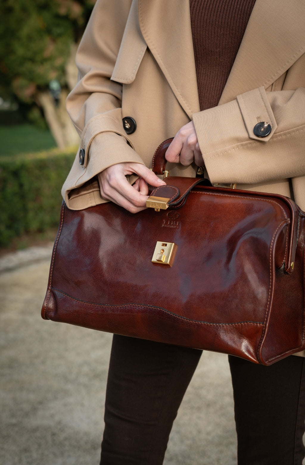 En doktorsväska i läder är en tidlös klassiker men i den här mindre versionen har stor personlighet har ersatts med charm. Även om den utan tvekan är en gåva med omtanke till en läkare eller läkarstudent, passar den ännu bättre som iögonfallande accessoar.