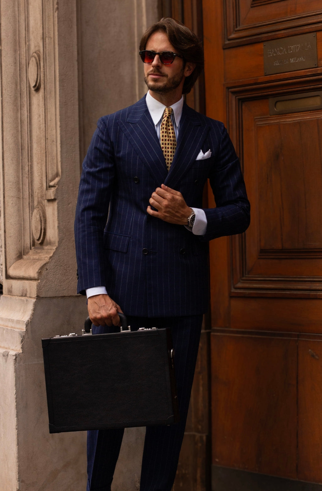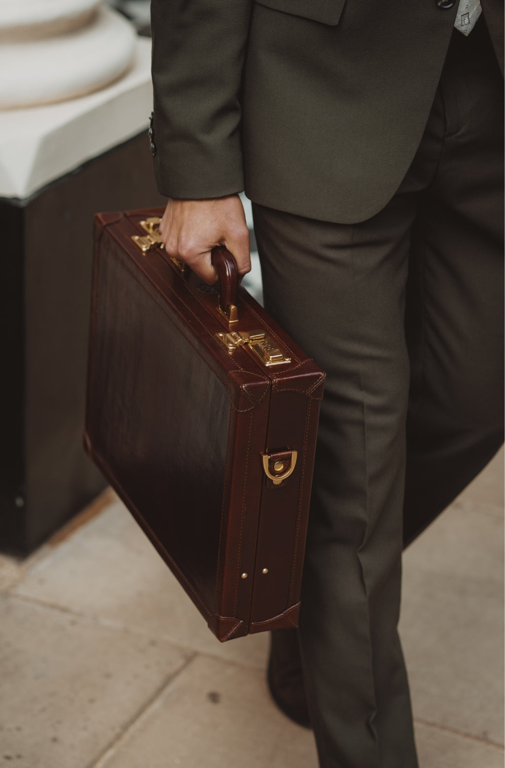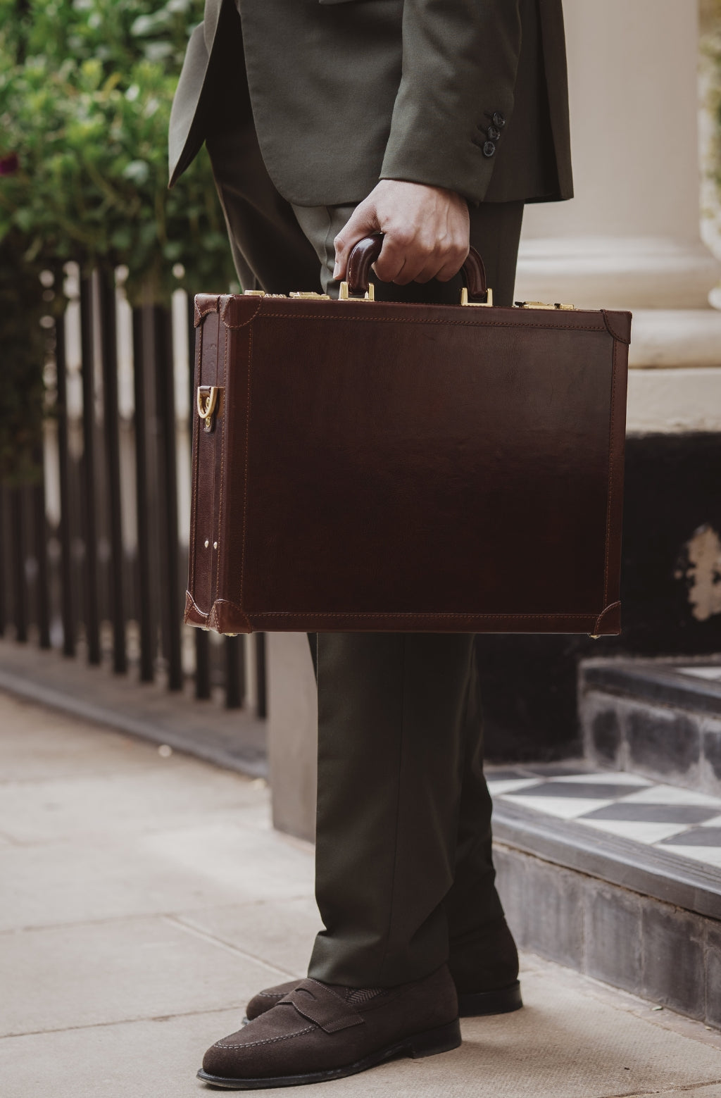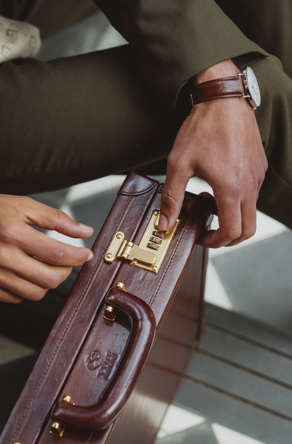 Denna utsökta attachéväska är en perfekt följeslagaren för det livserfarna proffset. Attachéväska är tillverkad av finaste fullnarvsläder och är designat att förvara dina dokument och ägodelar säkert och skyddat. Kombinationslåset och de förstärkta hörnen håller högsta nivå av säkerhet, medan den lyxiga finishen och de subtila detaljerna lyfter fodralets utseende och känsla. Oavsett om du ska ta med dig viktiga dokument till ett möte eller bara pendlar till kontoret, erbjuder den här attachéväskan en perfekt blandning av stil och funktionalitet.