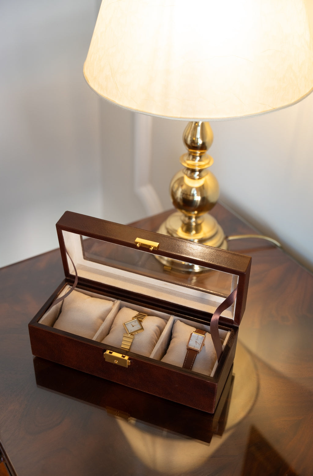 En hyllning till stillsam lyx, Silence är designad för dig som förstår kraften i närvaro utan att föra för mycket väsen. Den är tillverkad i fullnarvsläder och erbjuder ett elegant hem för dina mest personliga klockor – föremål som markerar ögonblick, berättelser och minnen ur livet. Med en genomskinlig topp som erbjuder en bekväm överblick av dess innehåll, Silence bjuder in till uppskattning utan att störas. Var enda detalj är formad med avsikt, strukturerad, säker och bestående.