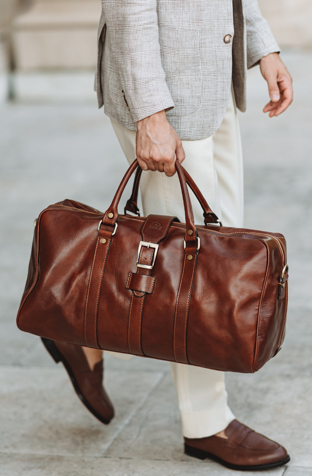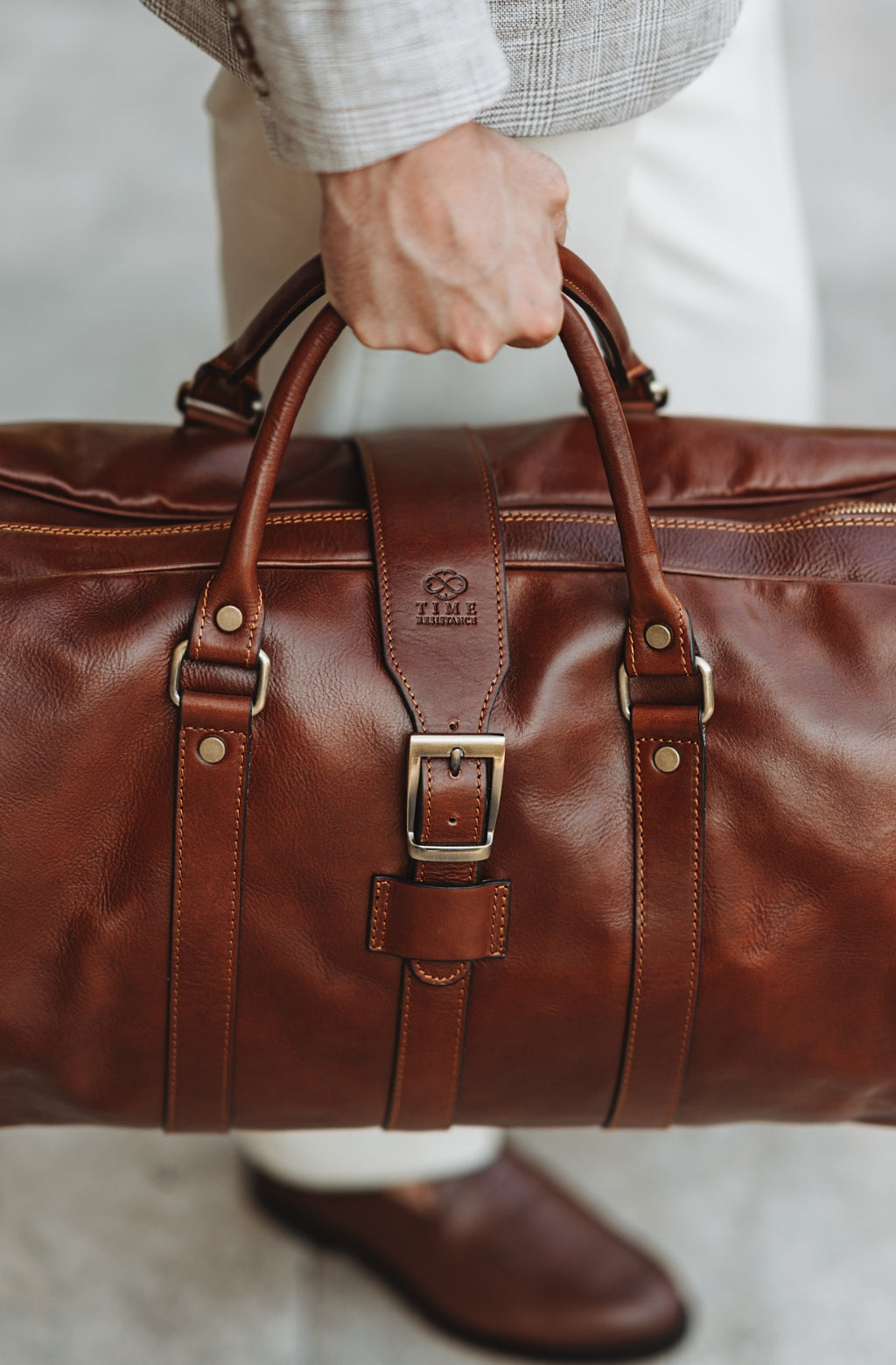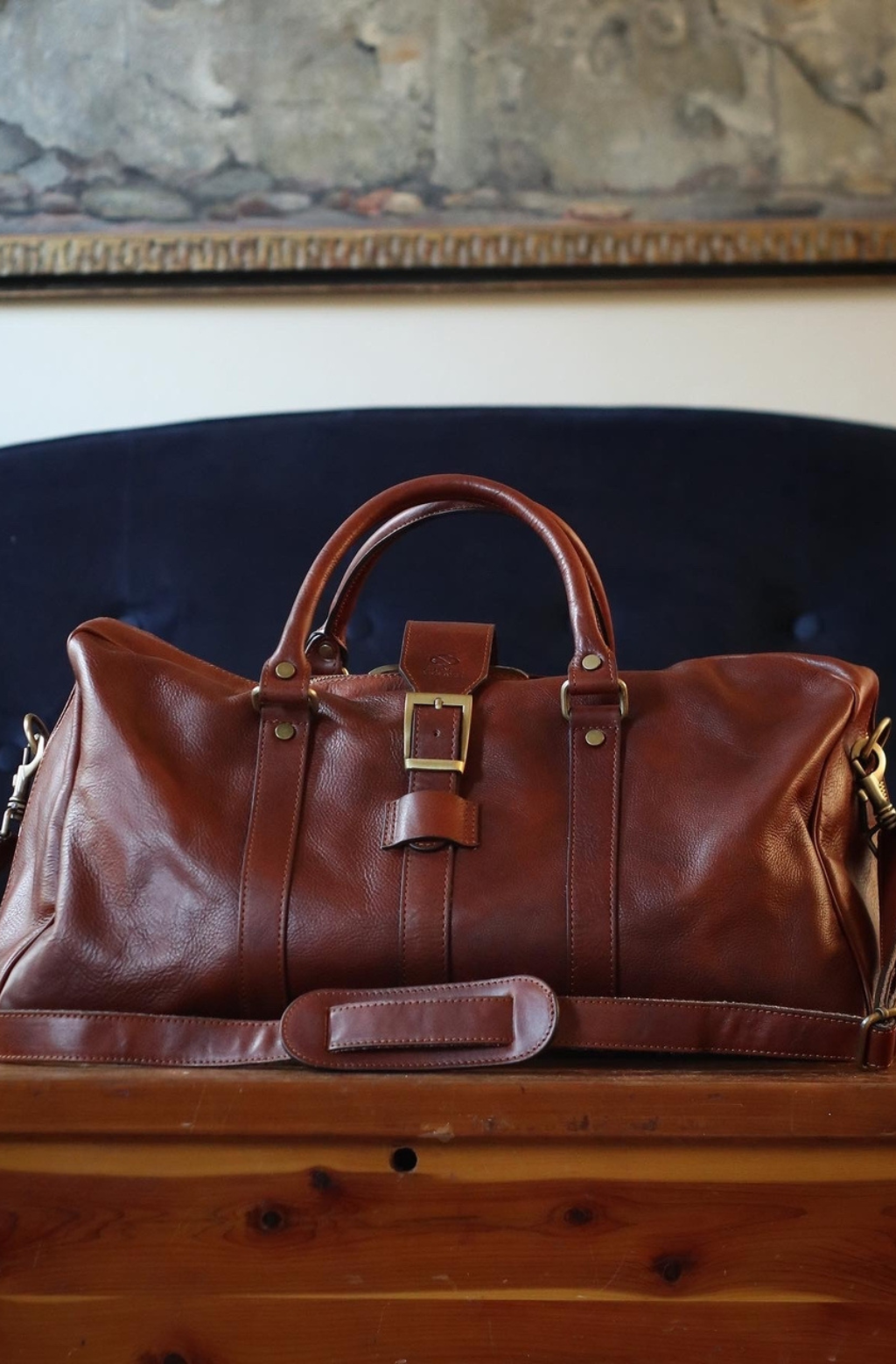 Cognacbrun matt duffelväska i läder – Tender Is the Night