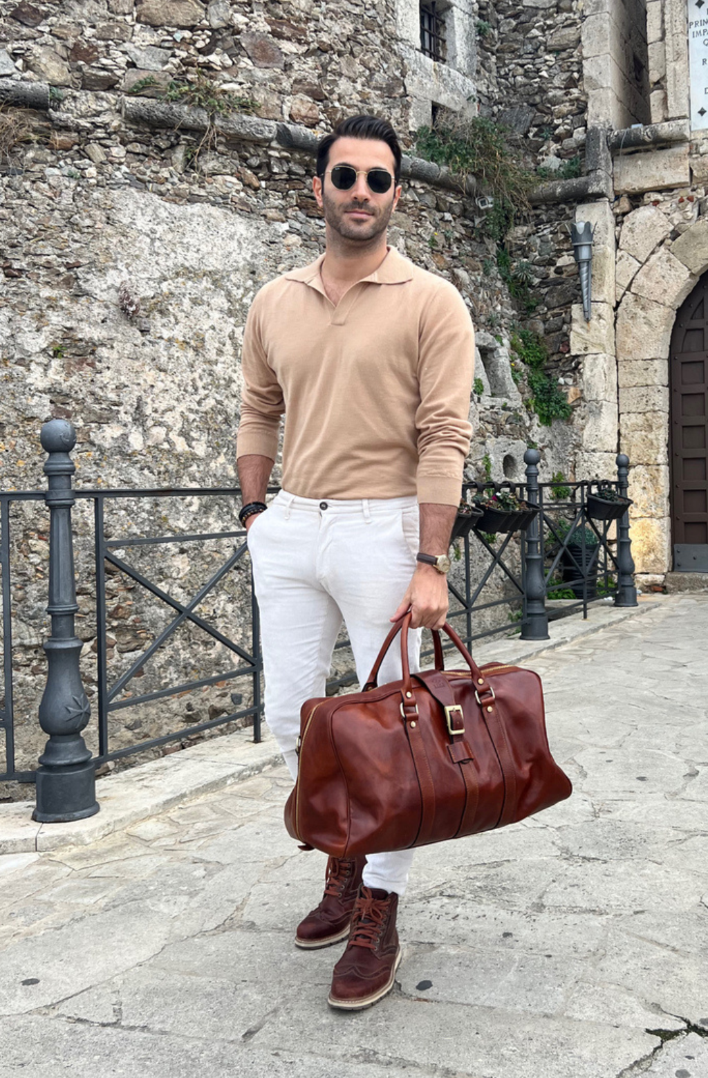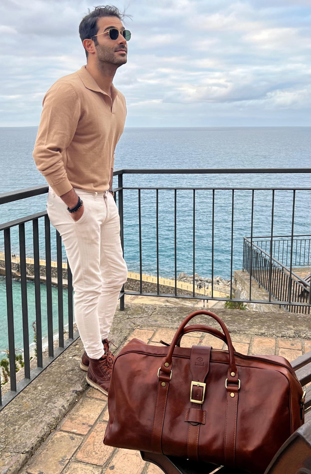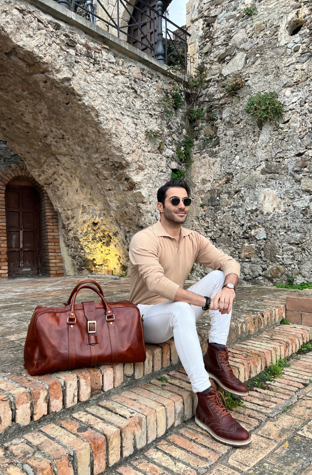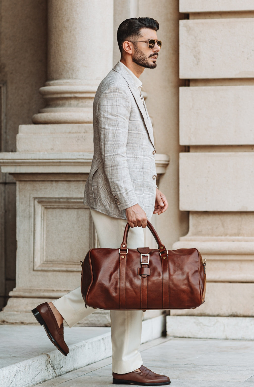 Cognacbrun matt duffelväska i läder – Tender Is the Night