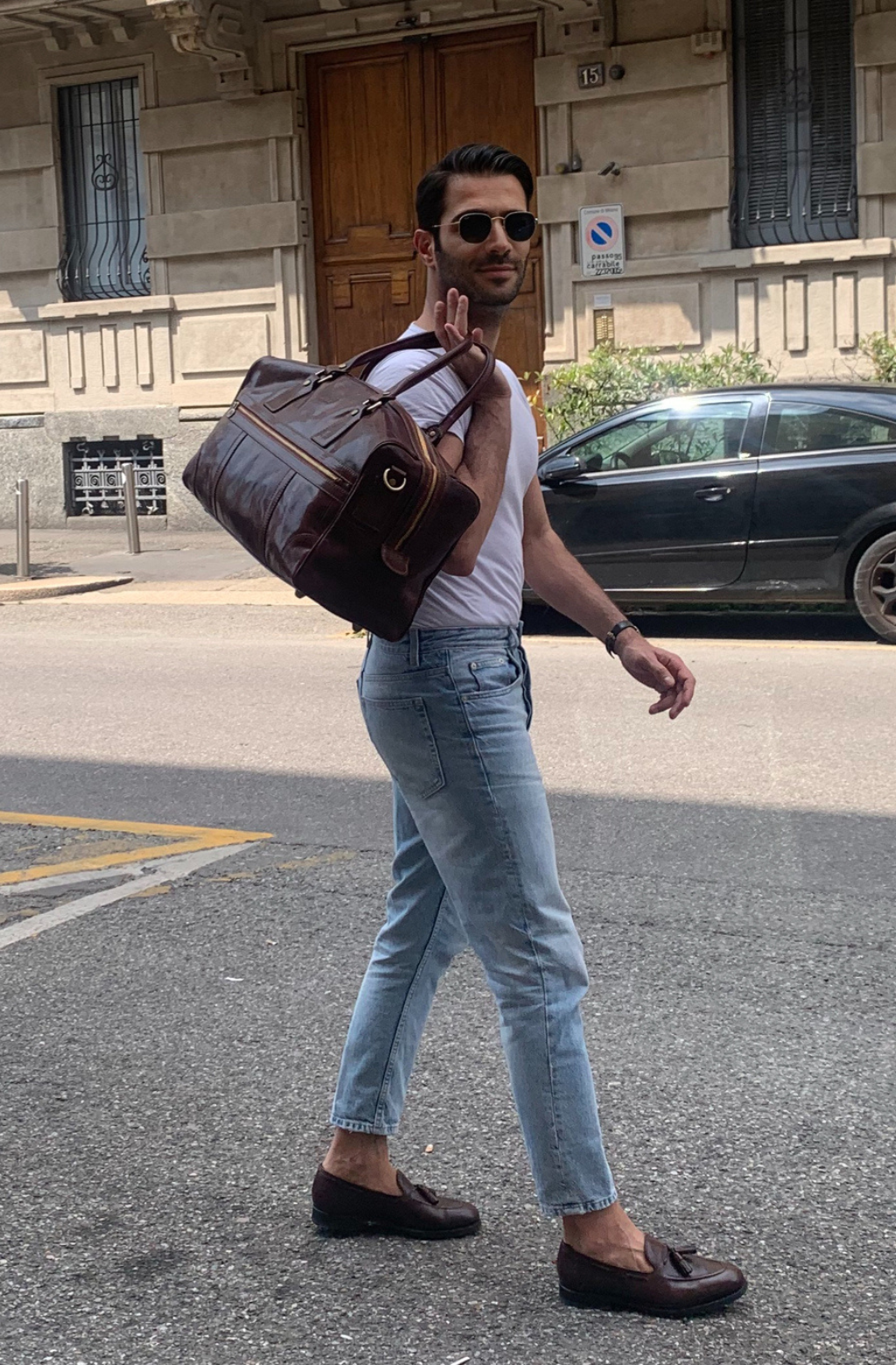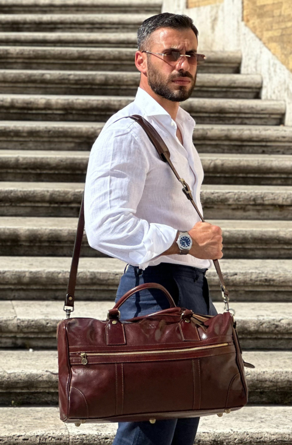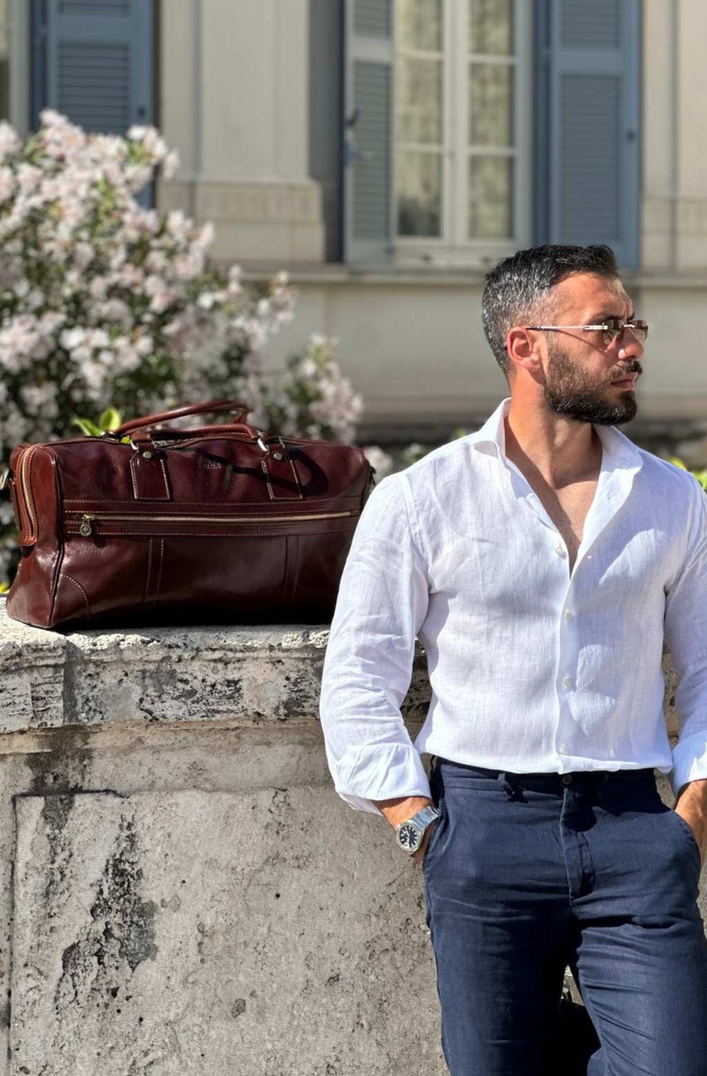 I resans kartotek framträder "To the Lighthouse" som en trogen följeslagare och ett tyst vittne till de äventyr som vi har framför oss. Tillverkad med noggrann omsorg antyder erbjuder dess robusta yttre inte bara motståndskraft men lockar också med löftet om ännu ej påbörjade resor. Dekorerad med två eleganta vertikala läderremmar och med förstärkningar i varje hörn, kombinerar den form med god funktion, vilket ger den en touch av tidlös elegans till dess design samtidigt som den ger extra support till vad du satsar på. I dess rymliga utrymme får minnen en fristad, inbäddade i den väl använda interiören. För varje steg du tar blir den mer än bara en väska; den förvandlas subtilt till en betrodd vän, som vakar över dina värdefulla ögonblick. Låt "To the Lighthouse" bli din trogna följeslagare när du navigerar längs resans snirklande vägar och bli, en symbol för motståndskraft mitt i de ständigt föränderliga landskapen ute på livets oändliga äventyr.