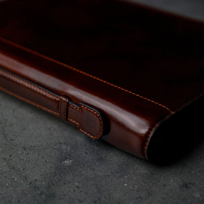 Time Resistance använder italienskt Vachetta-fullnarvsläder: vegetabiliskt garvat och handfärgat. Med tiden får det en vacker, levande patina.