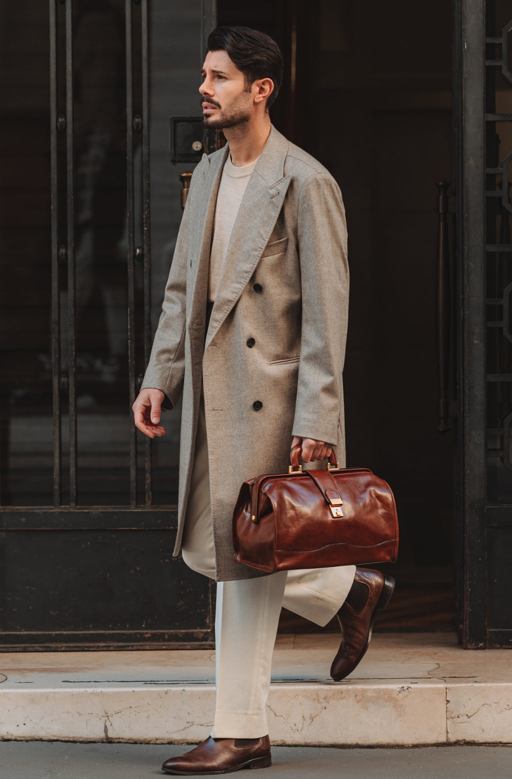 En doktorsväska i läder är en tidlös klassiker men i den här mindre versionen har stor personlighet har ersatts med charm. Även om den utan tvekan är en gåva med omtanke till en läkare eller läkarstudent, passar den ännu bättre som iögonfallande accessoar. För mannen som vill ge sin look karaktär samtidigt som han är klassisk, kommer den här väskan att med stil ta dig från kontoret till cigarrummet och vidare till Brick Lane. Precis det du behöver lägga till för lite mystik.