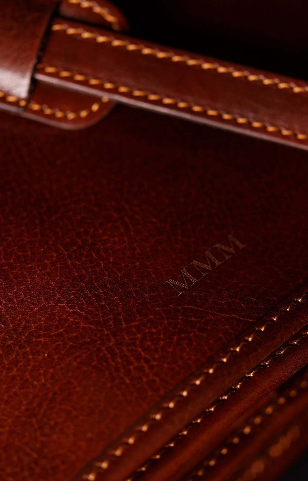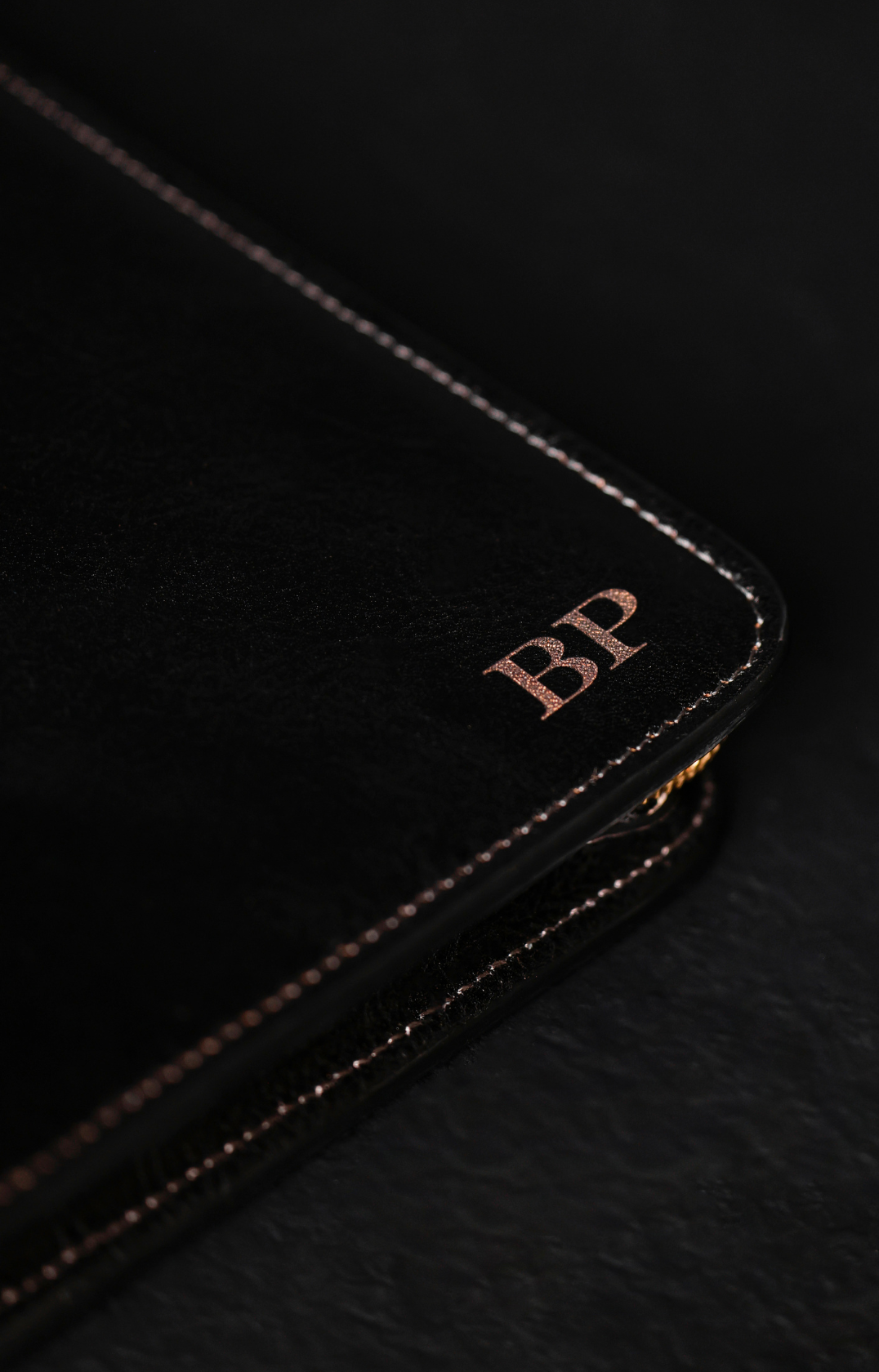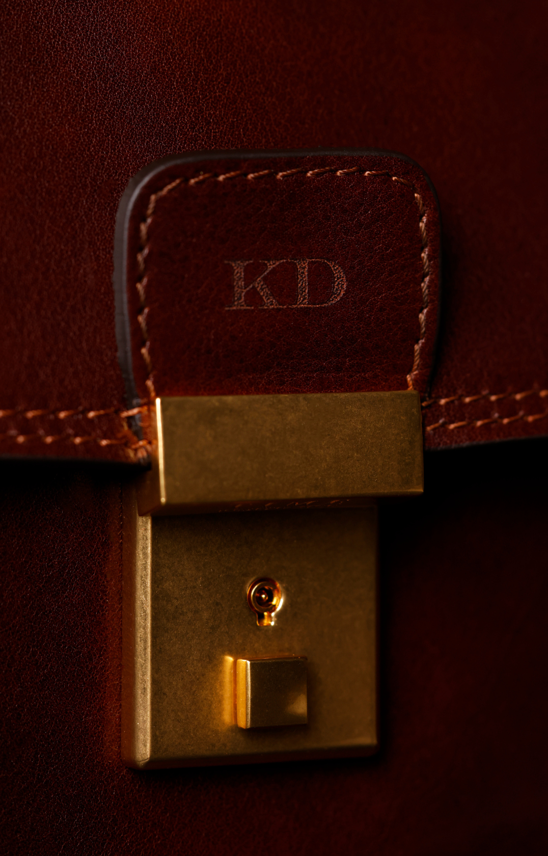 För en tidlös och förfinad touch kan du lägga till ett monogram på din läderaccessoar. Vår präglingstjänst kan prägla in dina initialer i lädret, något som ger en subtil men ändå utmärkande effekt. För att sätta en personlig prägel på din artikel med ett monogram, välj alternativet Personalisering när du ska lägga din beställning och ange följande information i ”särskilda instruktioner” på din artikel i din varukorg: