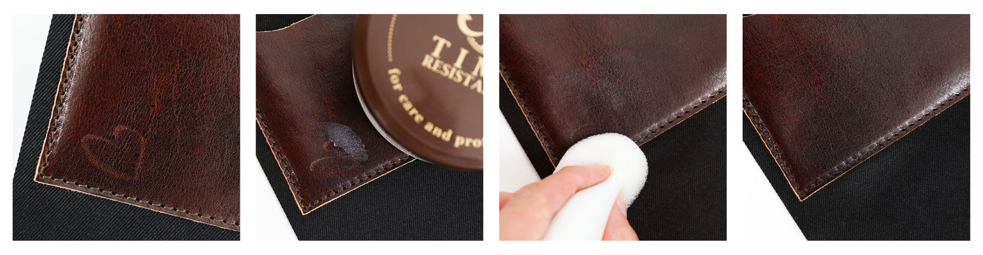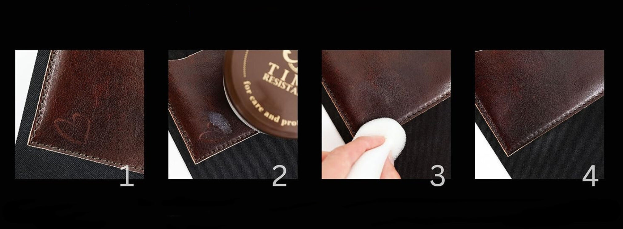 Med tid och användning kan läder komma att förlora fukt och oljor, vilket kan resultera i att det blir torrt, flagnar och blir skrynkligt. För att behålla lädret smidigt bör du regelbundet återfukta det. Vi rekommenderar att du använder en läderbalsam av god kvalitet och som innehåller en blandning av naturliga vaxer och oljor som bivax, jojobaolja och avokadoolja. Doppa en appliceringssvamp eller en mjuk trasa i balsamet och gnid försiktigt in i väskan. Om lädret inte skulle absorbera allt balsam, torkar du bort överskottet med en ren trasa. Detta bör göras en eller två gånger i månaden. Väskor från Time Resistance är förbehandlade med ett hälsosamt skyddande lager balsam, så att du kan börja använda dem direkt.