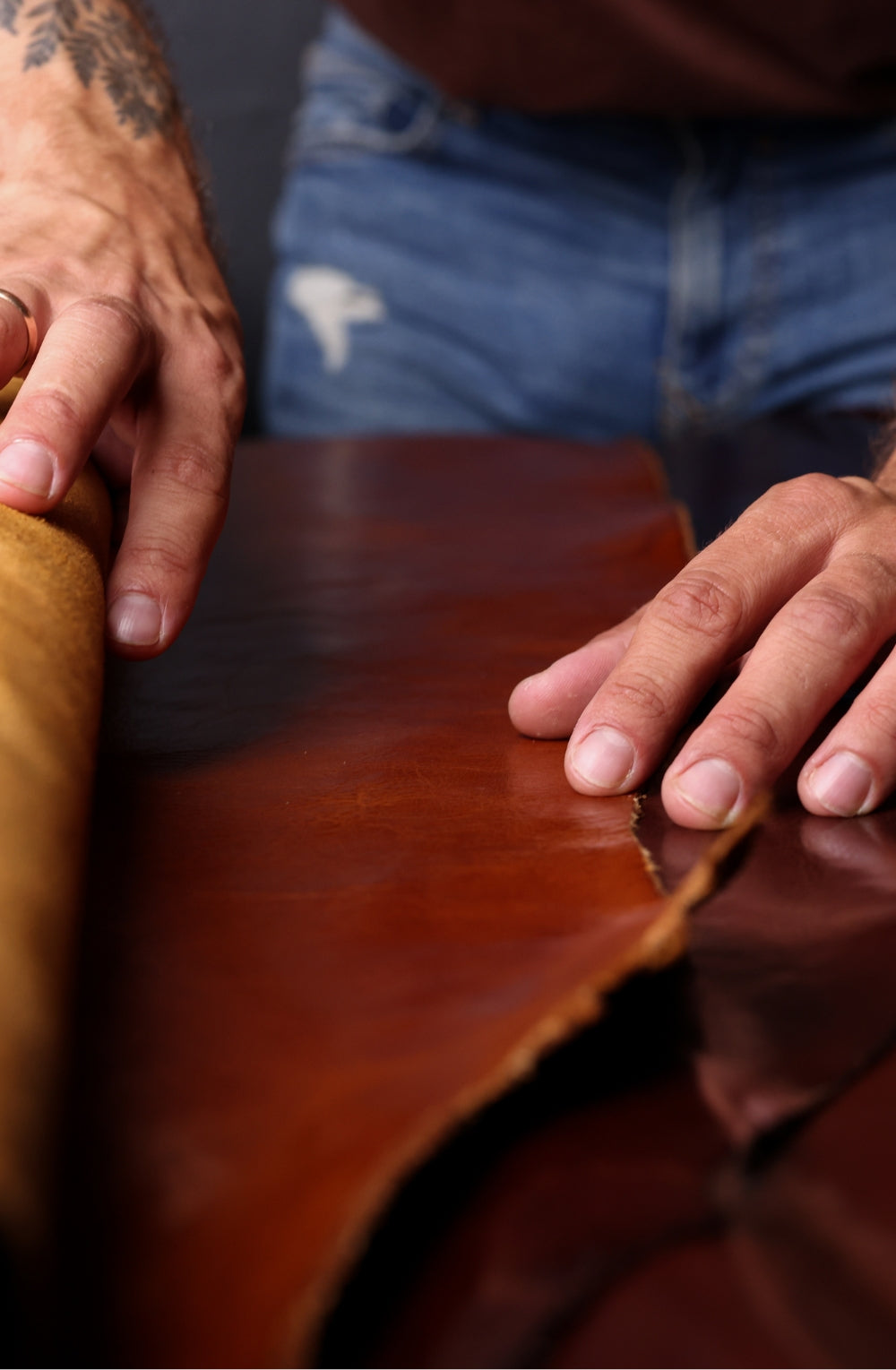 Den hantverksmässiga tekniken som används vid garvning i vår process framhäver lädrets naturliga skönhet. Små ådror, rynkor och omärkliga repor kan förekomma, vilket bara är ett bevis på lädrets äkthet och gör varje produkt verkligen unikt. Dessutom ger vegetabilisk garvning lädret en naturlig jordig doft, något som förstärker dess särprägel.