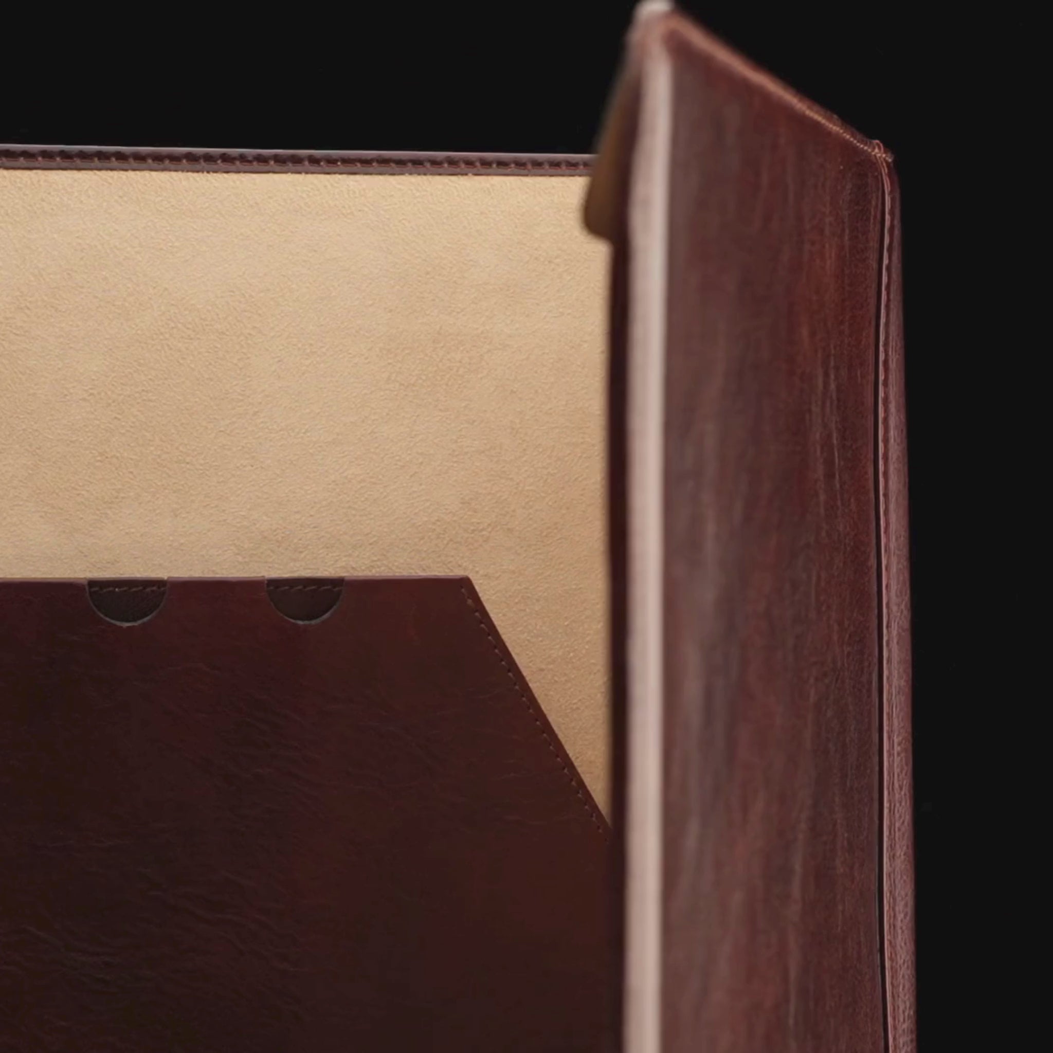 Spelar ingen roll om du förbereder pappersarbete inför en presentation med höga insatser eller skyddar din surfplatta inför ett viktigt möte, den här dokumentmappen ser till att du alltid är redo att göra ett bestående intryck. Innanför dess eleganta utsida finns en rymlig interiör, klädd med ett skonsamt material som innesluter dina enheter och papper och skyddar dem från repor och skador. Med flera pennöglor och genomtänkta kortfacken är varje detalj noggrant övervägd för att du kan kunna effektivisera ditt arbetsflöde och förbättra din organisatoriska förmåga. Ge din professionella person ett lyft med vår dokumentmapp i läder; sinnebilden av funktion och ambition.