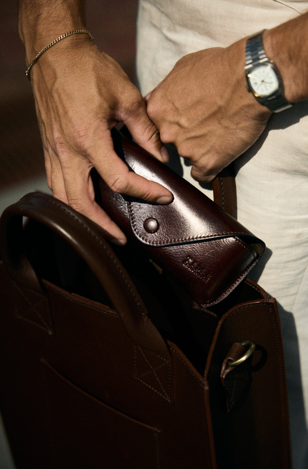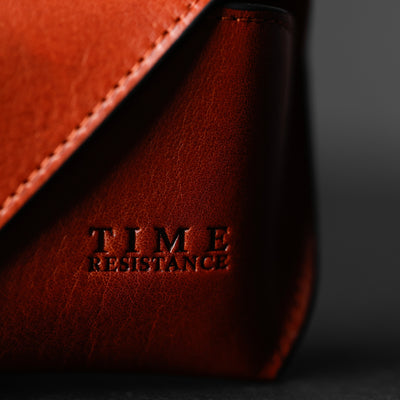 Time Resistance använder italienskt Vachetta-fullnarvsläder: vegetabiliskt garvat och handfärgat. Med tiden får det en vacker, levande patina.