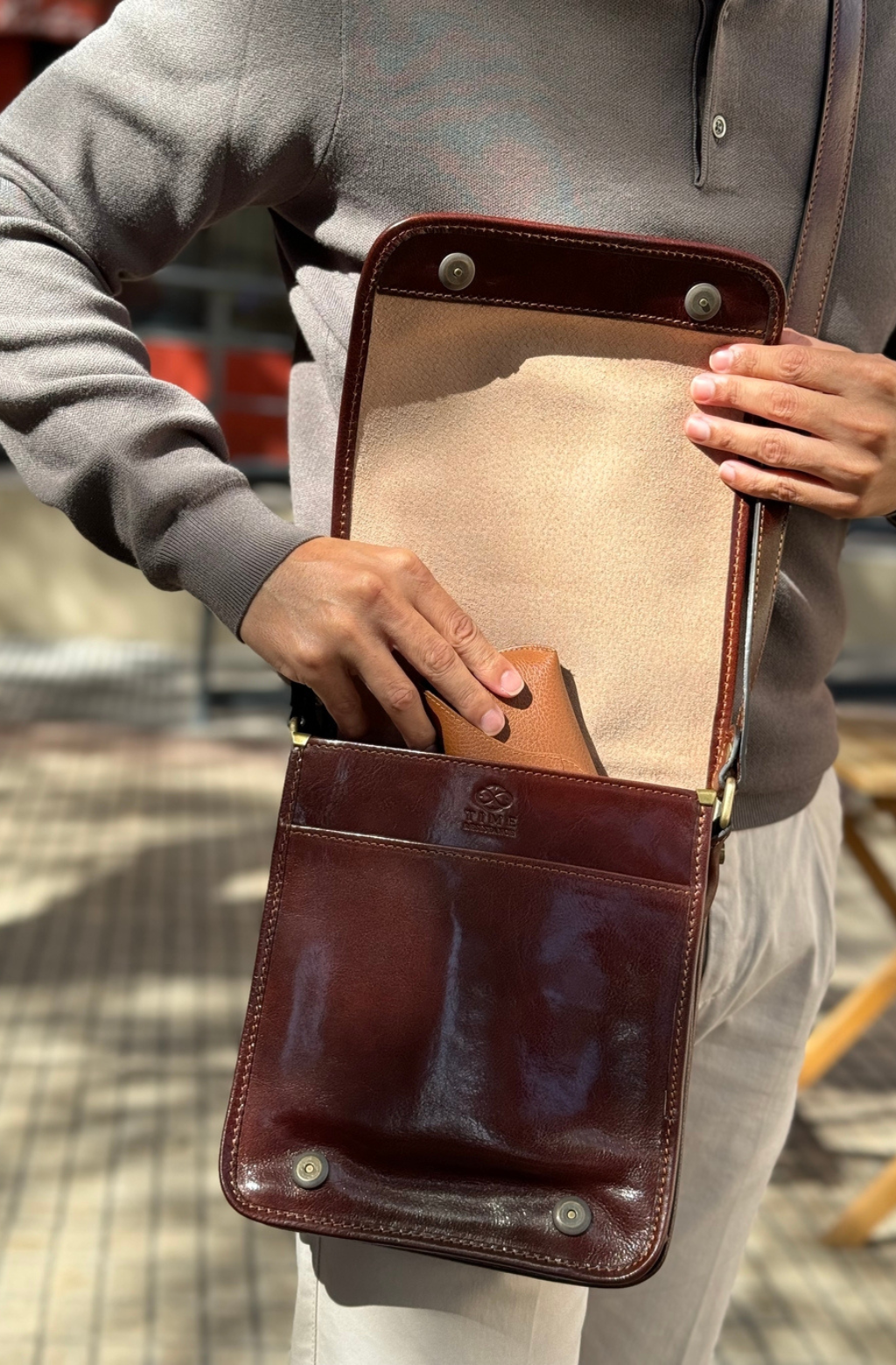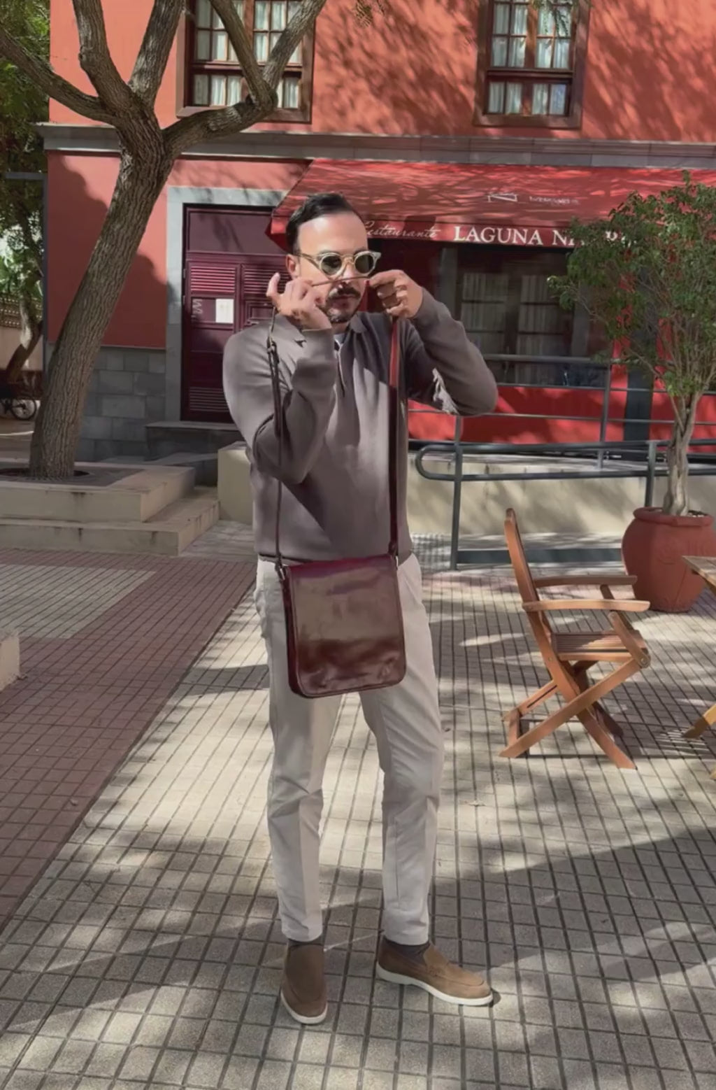 En liten axelremsväska i läder med en bekymmerslös attityd. Klassisk, lätt och anspråkslös, den är idealisk för en fri själ med mycket känsla för äventyr och lust att utforska; den är för någon som börjar varje dag med ögon fulla av förundran och som förväntar sig det oväntade bakom vart enda hörn.