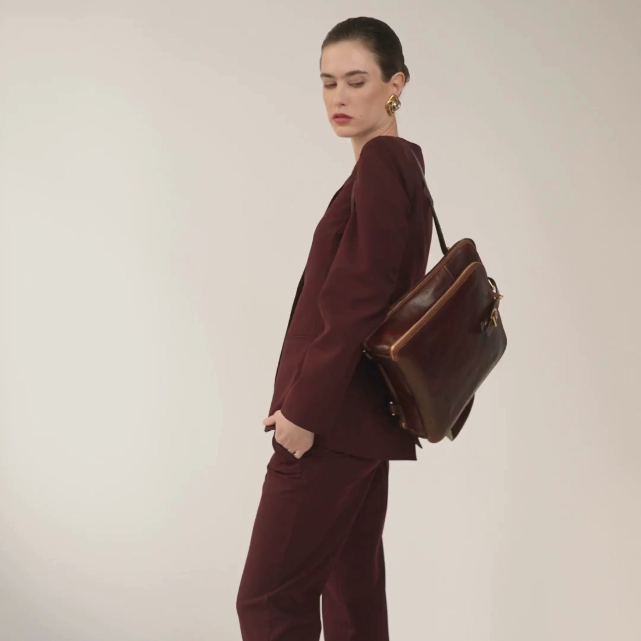 Ryggsäck i fullnarvsläder för kvinnan som absolut inte har något att göra med träningskläder. Faktum är att du kan kasta alla tankar du någonsin haft om ryggsäckar. Denna accessoar är för den eleganta, polerade damen med nytänkande attityd. Innovation kommer ofta från man återuppfunnit en klassiker och Clarissa är en snygg ryggsäck som kombinerar business med personlighet. Den kommer aldrig att vara omgiven av 20 identiska kopior. Dessutom kan ryggsäcken enkelt omvandlas till en axelväska genom att du bara drar i remmarna.