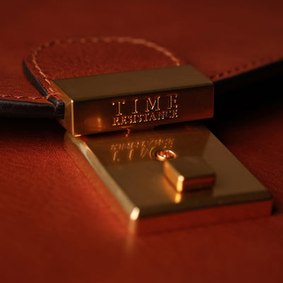 Time Resistance använder italienskt Vachetta-fullnarvsläder: vegetabiliskt garvat och handfärgat. Med tiden får det en vacker, levande patina.