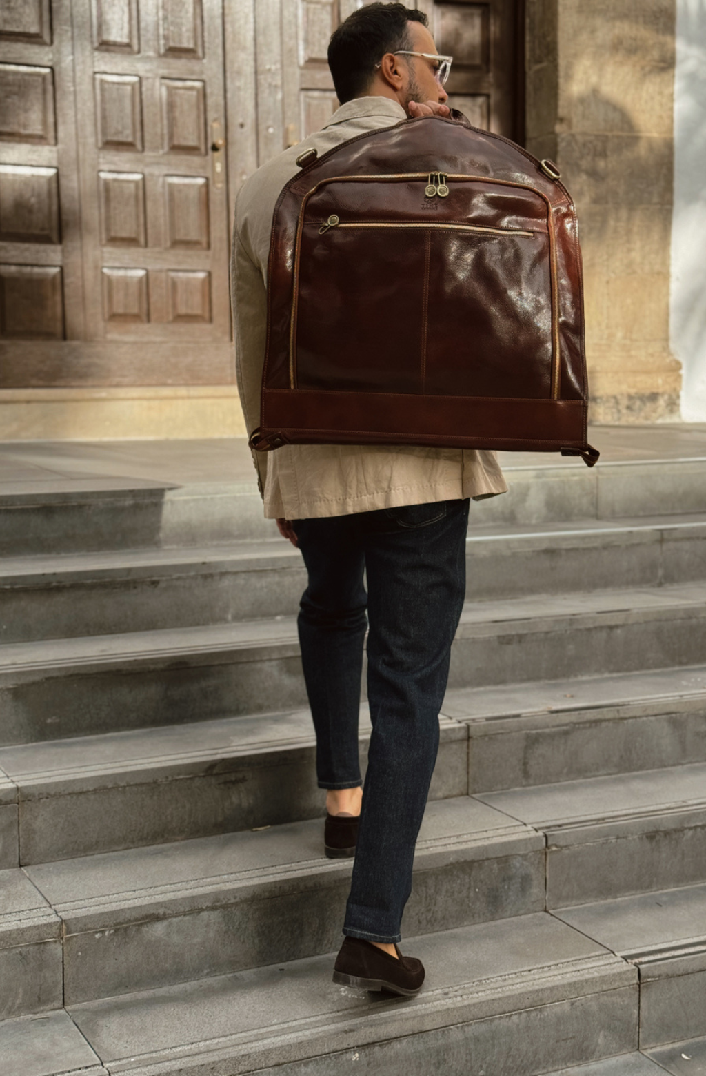 Låt dom se dig med en elegant och rymlig respartner som åtminstone rymmer två kostymer. Nu kan du resa med en skrynkelfri kostym och behöver inte bära den separat. Perfekt från början till slut, den här resegarderoben i fullnarvsläder gör att man ser dig ut på varenda affärsresa.