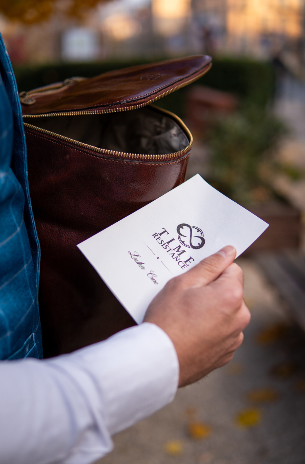 Time Resistance använder italienskt Vachetta-fullnarvsläder: vegetabiliskt garvat och handfärgat. Med tiden får det en vacker, levande patina.