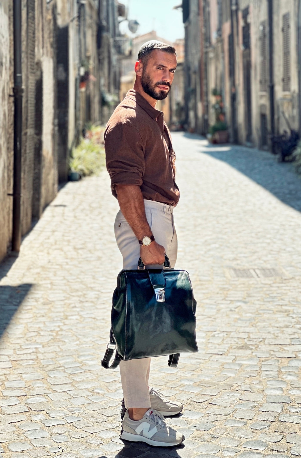 Time Resistance använder italienskt Vachetta-fullnarvsläder: vegetabiliskt garvat och handfärgat. Med tiden får det en vacker, levande patina.