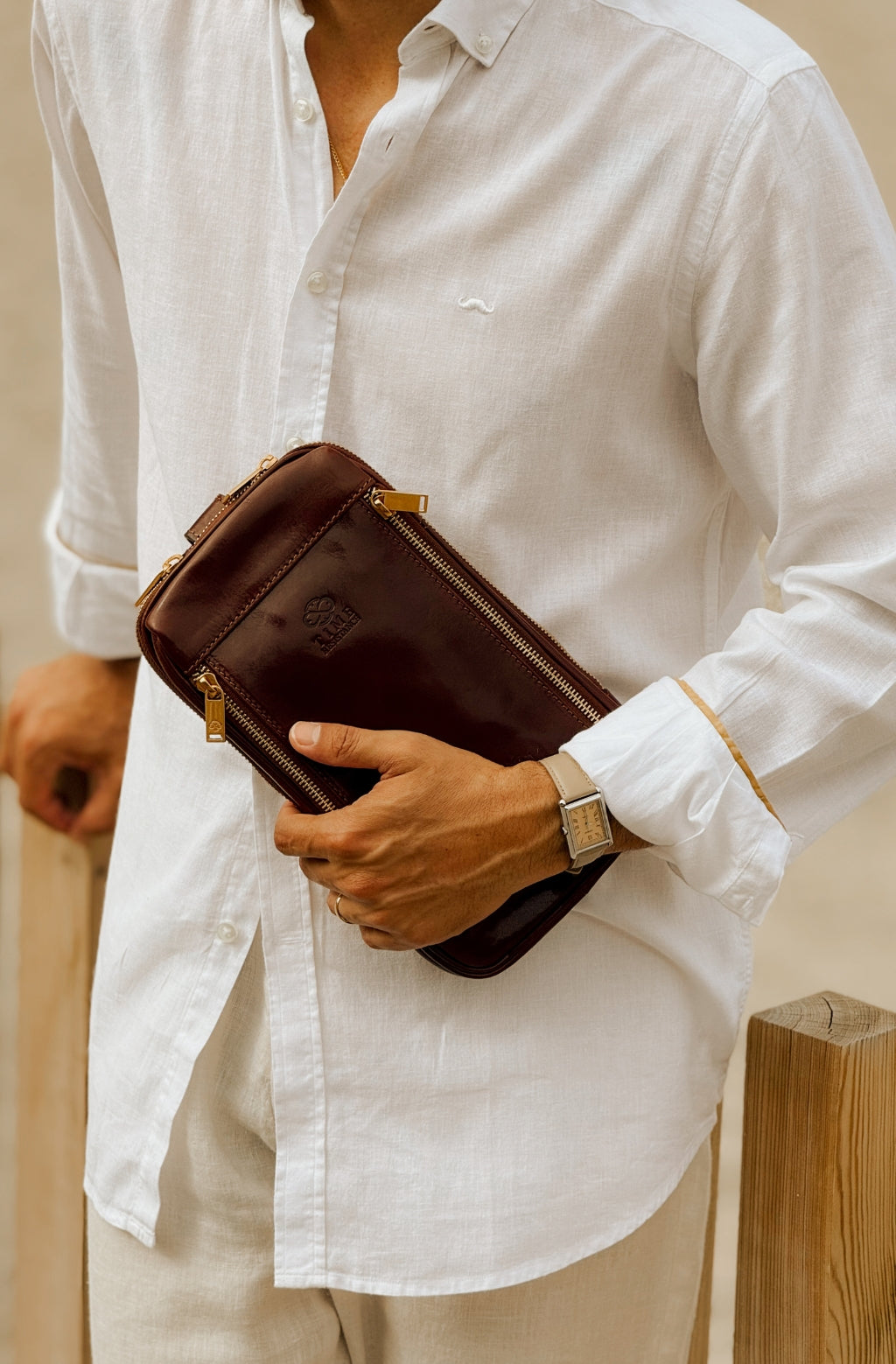 Time Resistance använder italienskt Vachetta-fullnarvsläder: vegetabiliskt garvat och handfärgat. Med tiden får det en vacker, levande patina.
