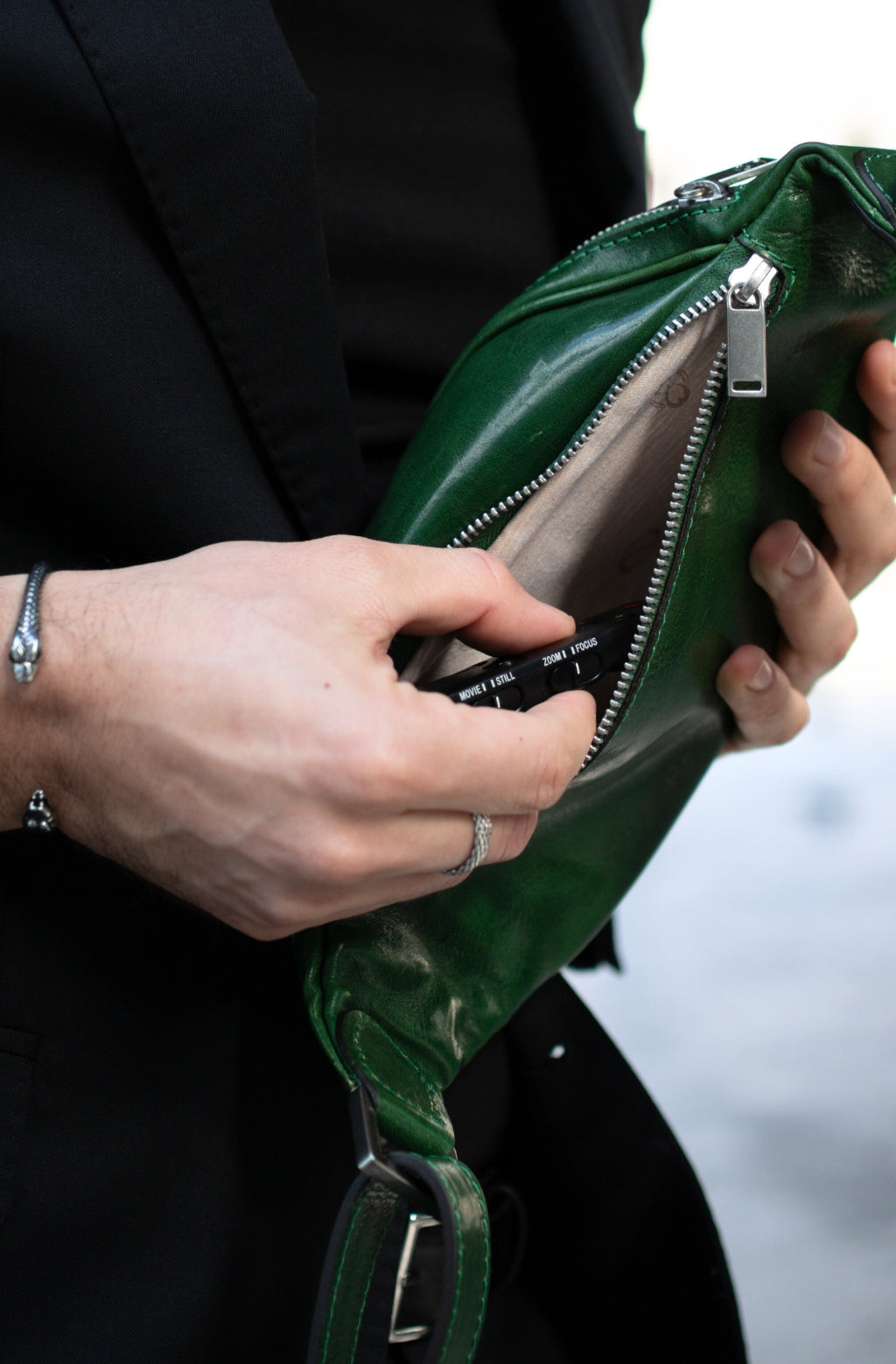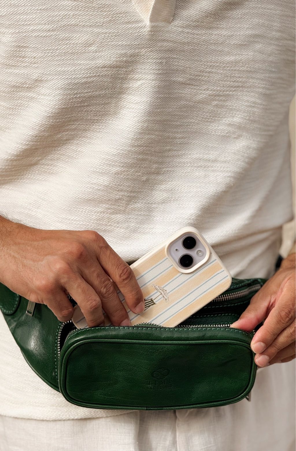 "Independent People" är ett äkta bevis på den bekymmersfria men ändå eleganta midjeväskan. Den här midjeväskan är tillverkad av italienskt läder i högsta kvalitet. Dess minimalistiska design rymmer alla tänkbara nödvändigheter: den har ett rymligt fack och två fickor med dragkedja för dina kort, nycklar, smartphone m.m. Perfekt för resor eller att gå till en lokal ”bondens marknad”. Midjeväskan är tillverkad i äkta italiensk stil: pålitliga dragkedjor, starka sömmar och en snygg design, vilket är allt du behöver för ett äventyr ute på stan.