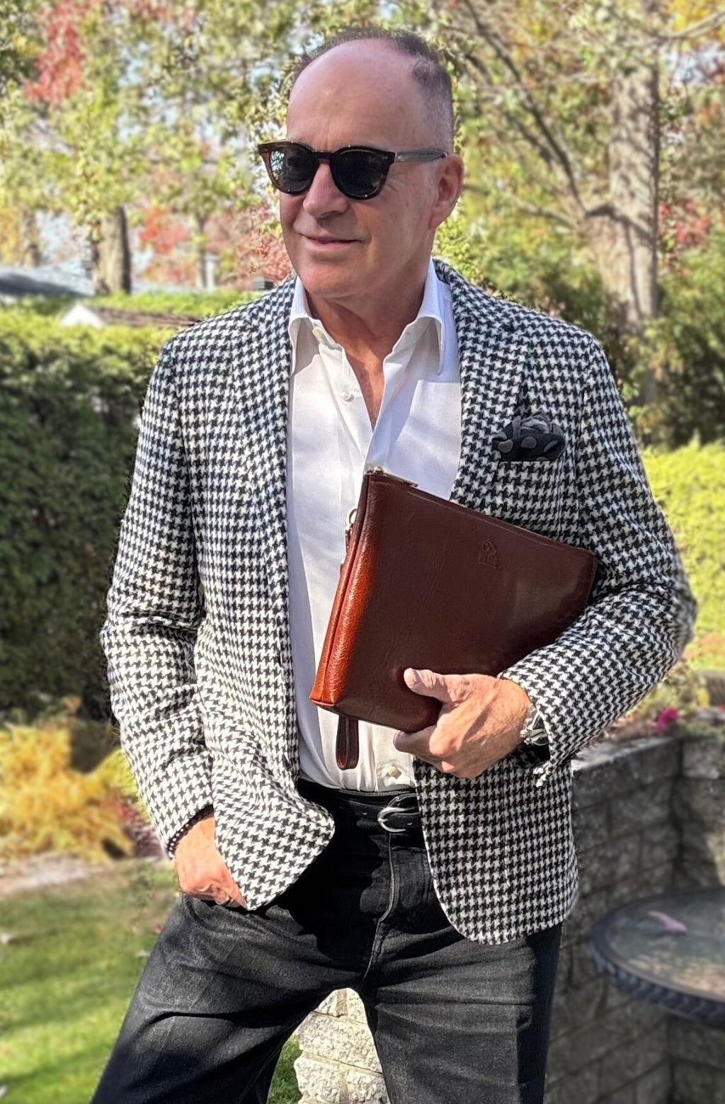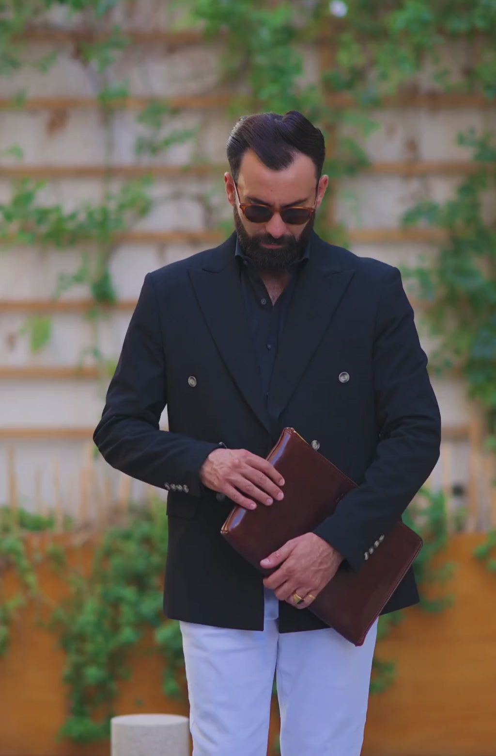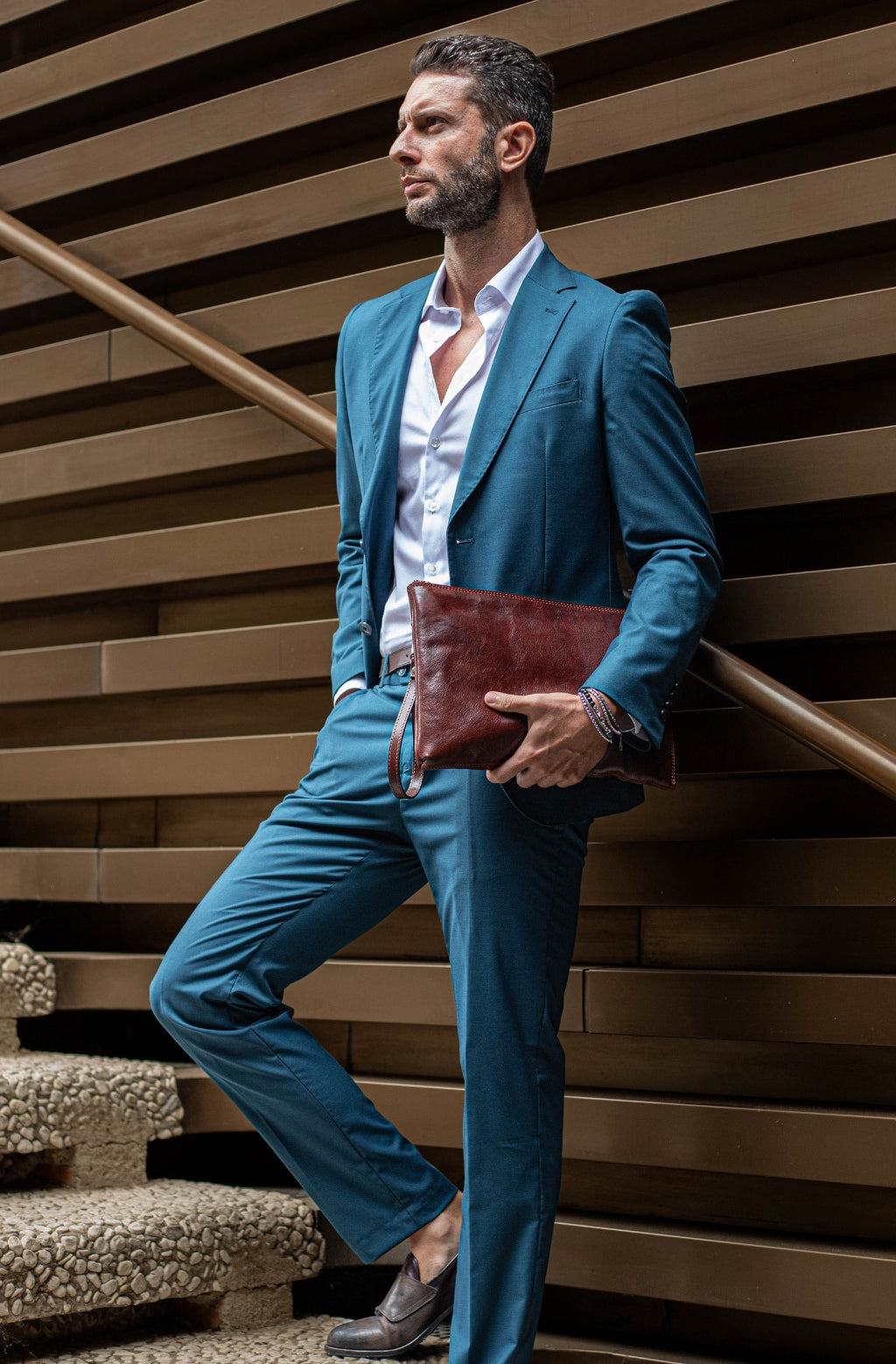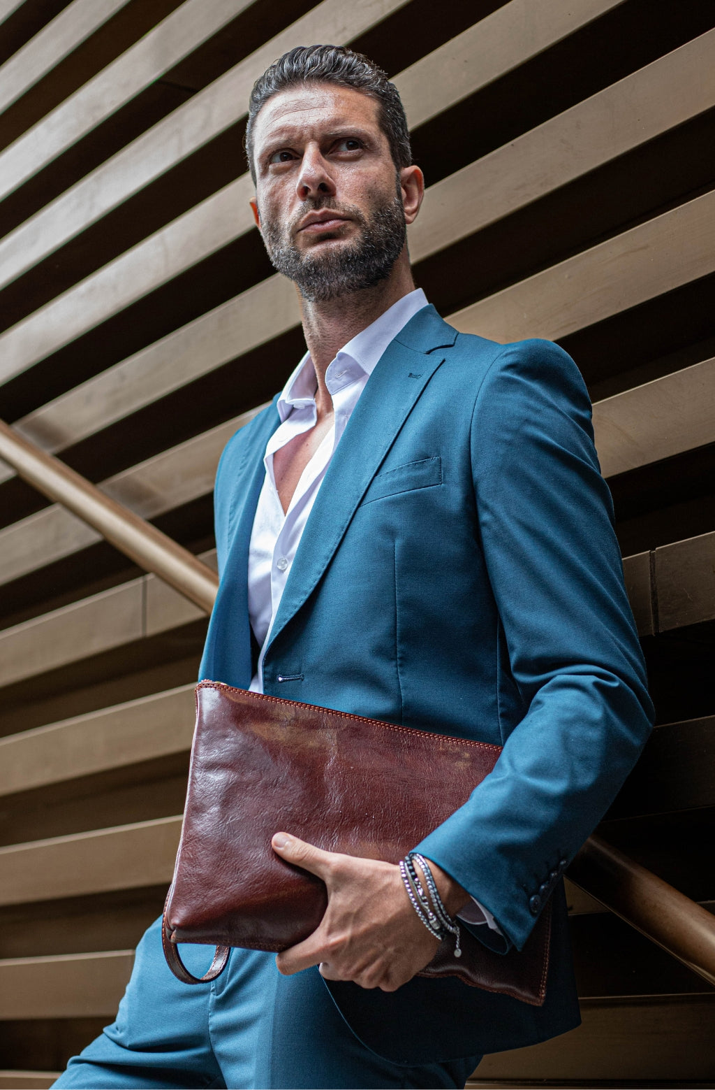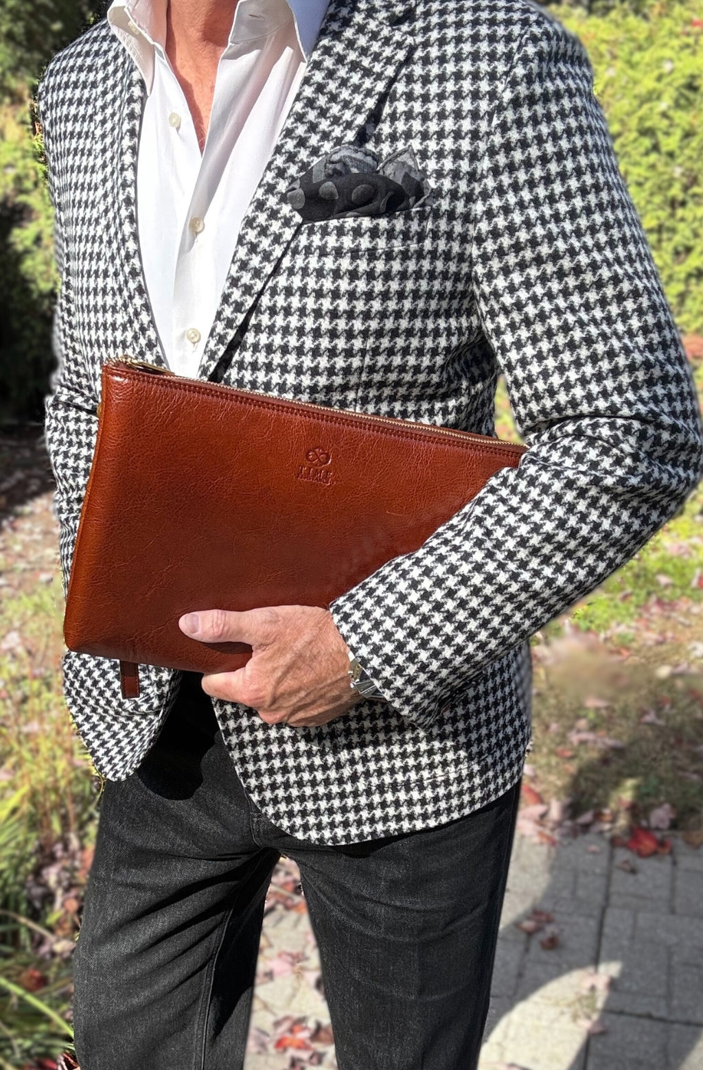 En maskulin clutchväska i italienskt läder. Minimalistisk design, perfekt för dig som gillar enkelheten utan att behöva ge avkall på elegans. Den rymmer alla dina nödvändigheter i vardagen, inklusive smartphone, en liten surfplatta osv., och ger dig en fullt affärsmässig look dock med en nypa elegans.