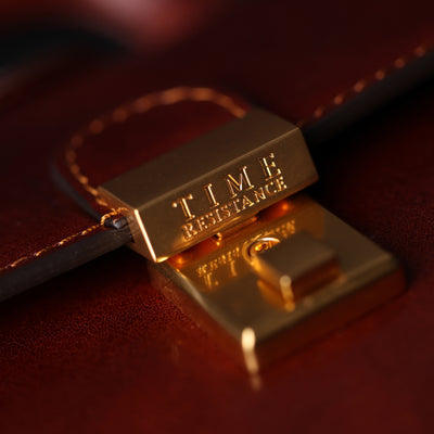 Time Resistance använder italienskt Vachetta-fullnarvsläder: vegetabiliskt garvat och handfärgat. Med tiden får det en vacker, levande patina.