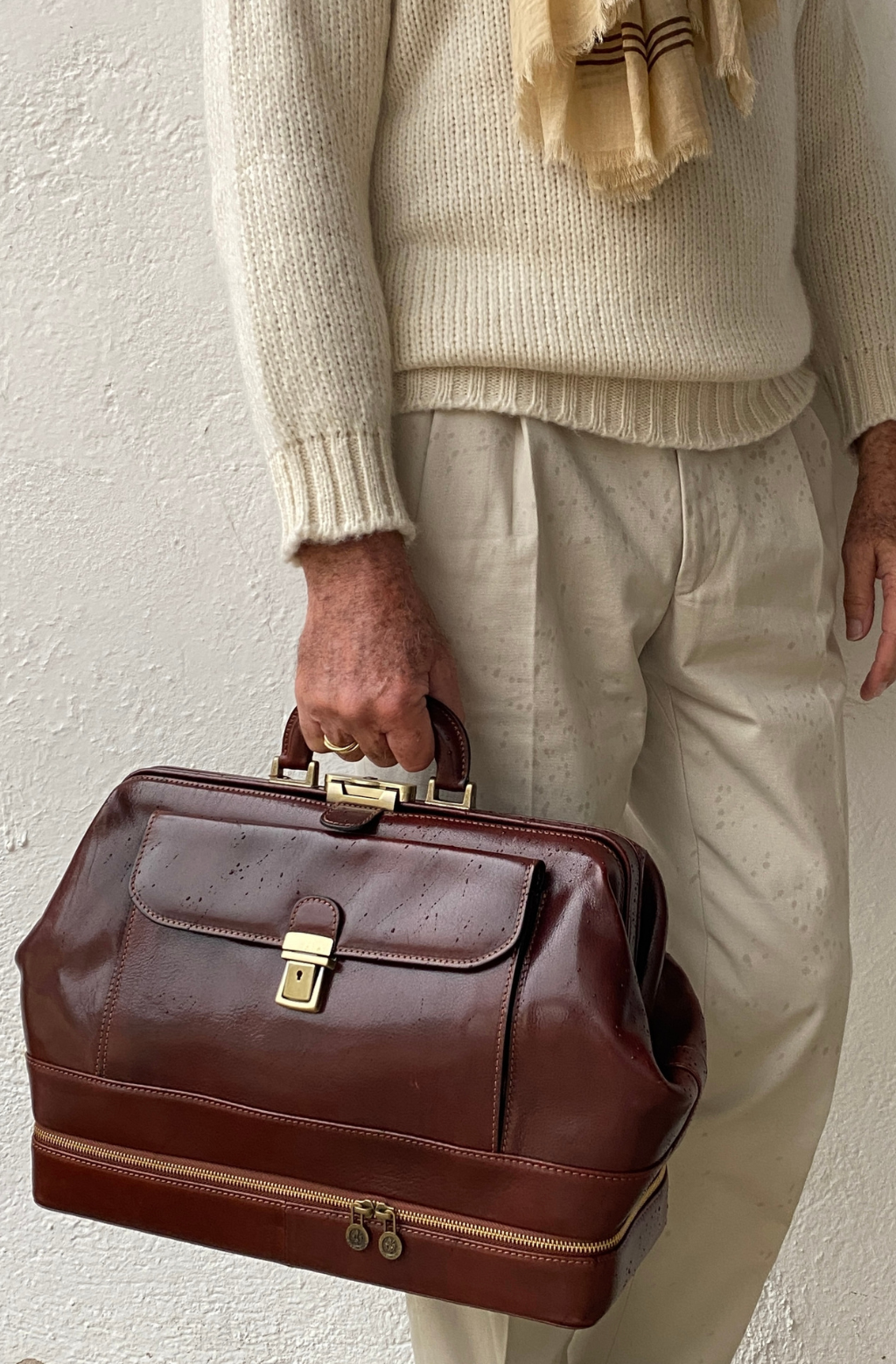 Med ursprung tillbaka på 1800-taket är doktorsväskan i brunt läder på samma gång en tidlös klassiker och en iögonfallande accessoar. En genomtänkt present till en läkare eller läkarstudent, men också ett supersnyggt accessoar för dej som vill ha en distinkt look utan att lägga ner för mycket tid och energi. Du behöver inte äga något stetoskop för att bära den: gör den till din vardagliga väska till kontoret, ta med det på en resa, och visa lite av din personlighet. Kompletterad med karisma.